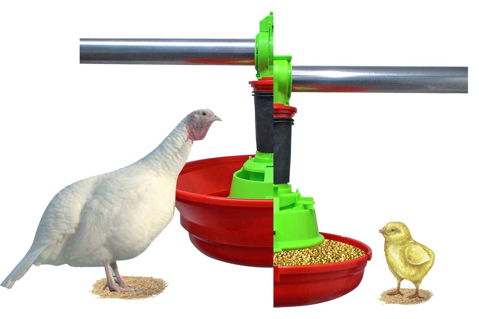 Tramoggetta robusta realizzata per tacchini, polli da carne e anatre per un’alimentazione corretta con eccellenti rese finali.