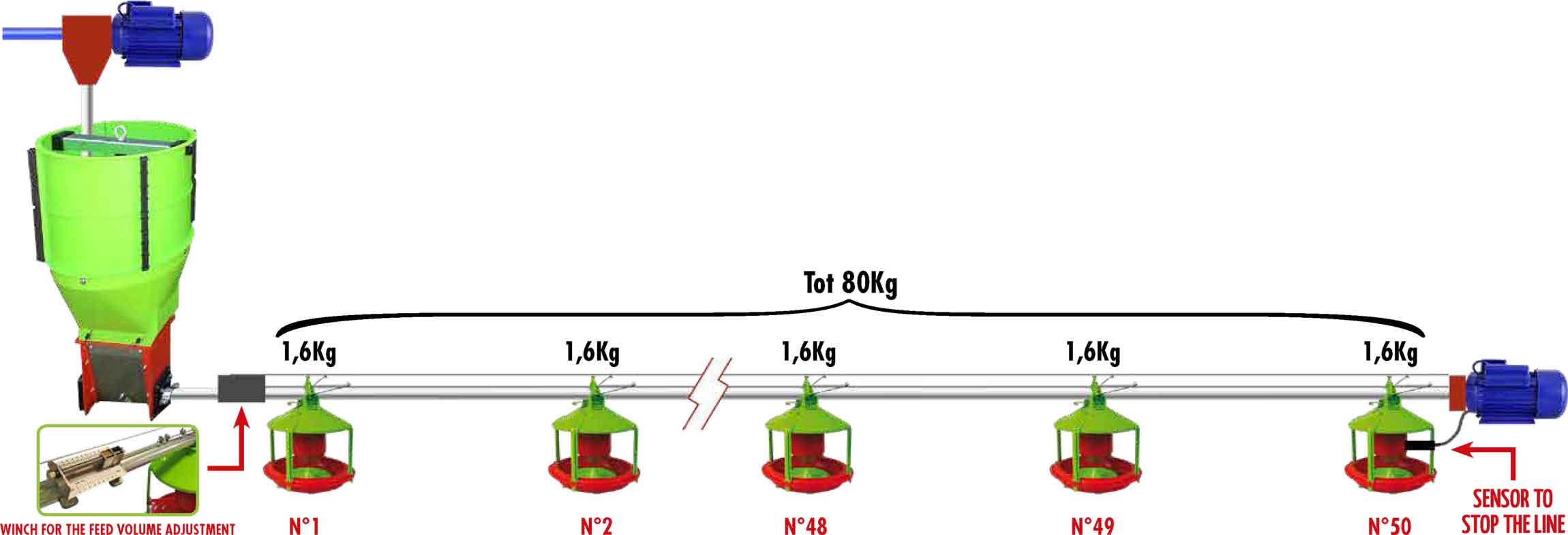Non servono sistemi di pesatura del mangime! Fa tutto la tramoggetta Self-dosy.