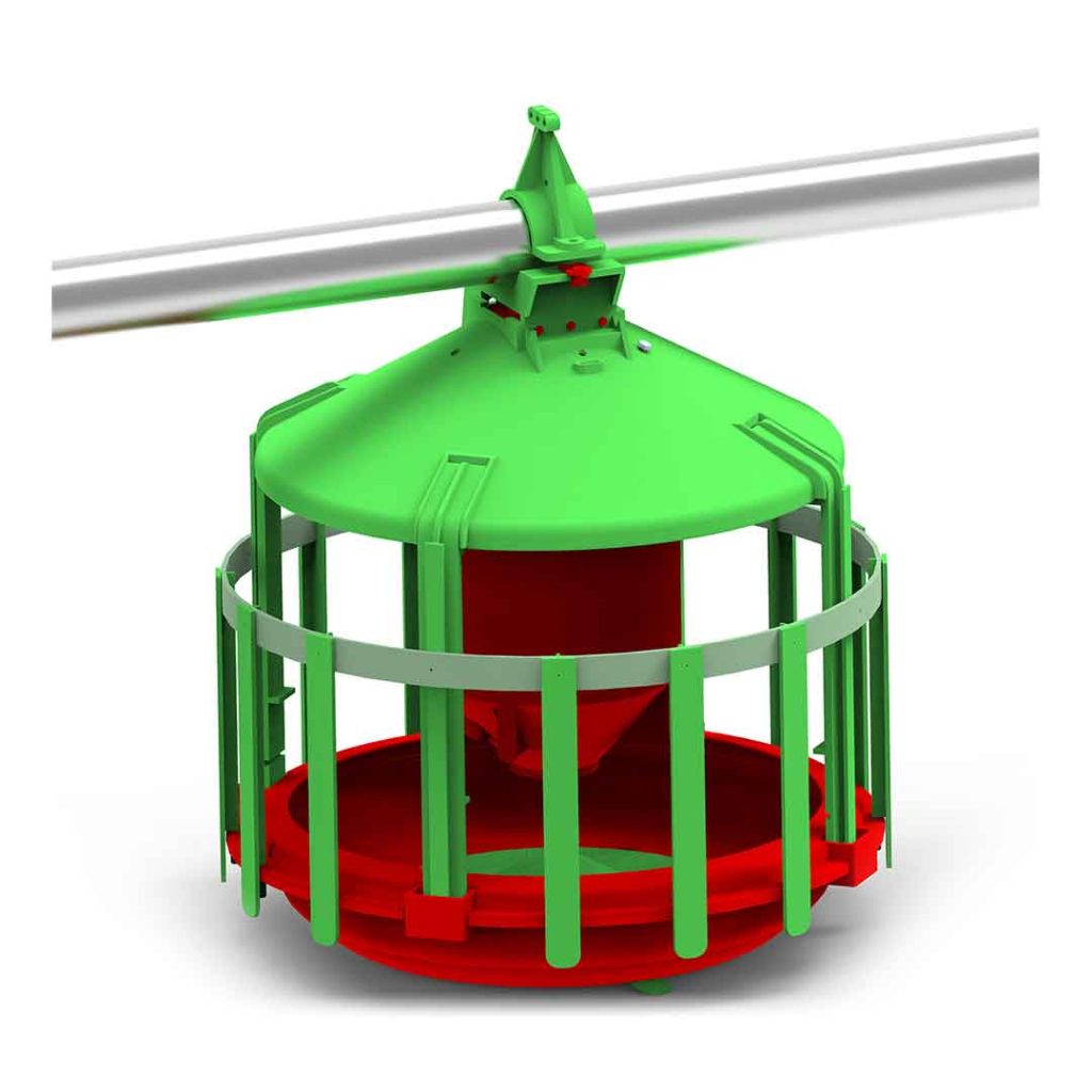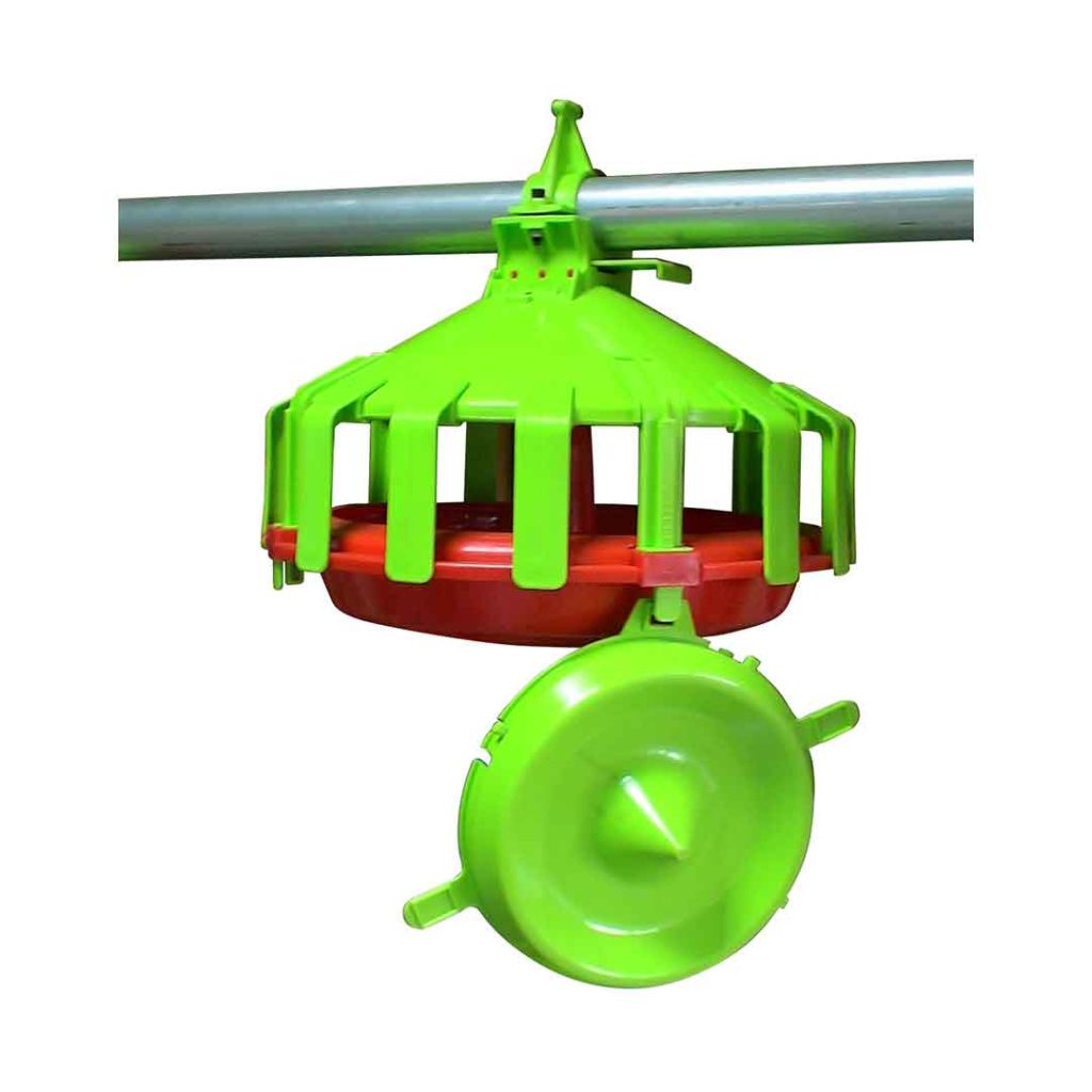 Sturdy feed pan designed with one adjustable anti-cock grid.