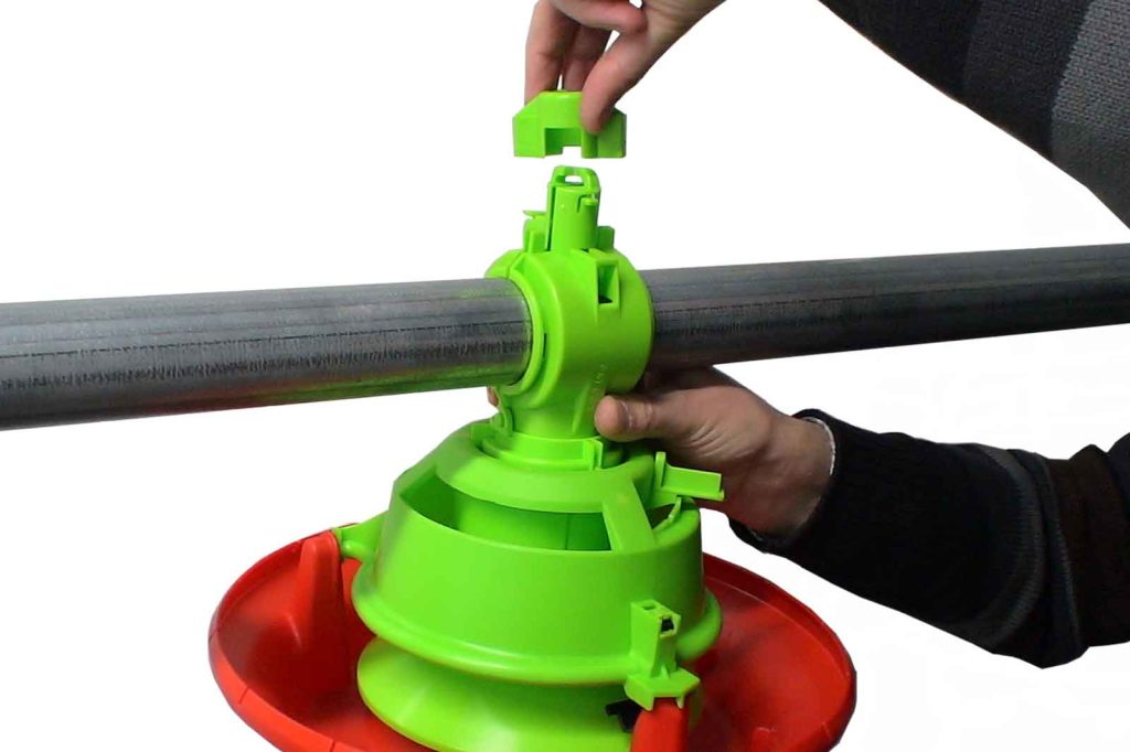 Drilled tube with upper protuberances for faster and more visible assembly of the pans than usual drilling.