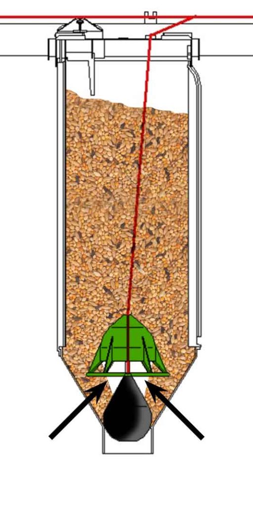 Even with a full dispenser, the lifting of the discharge ball is completely effortless, thanks to an easy solution that shields the ball against the weight of the feed above.
