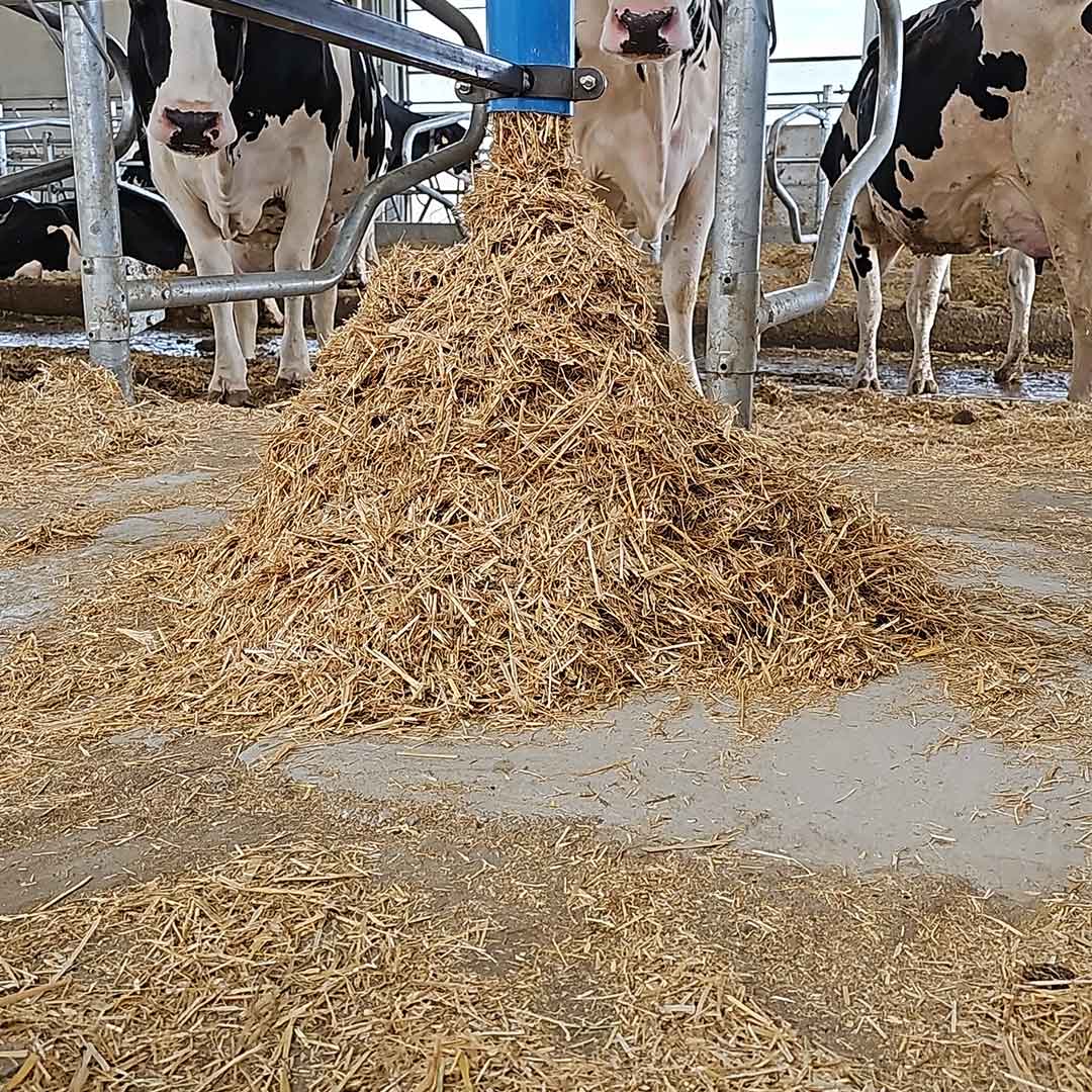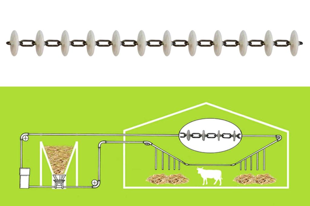 Systèmes à grand débit pour le transport de la paille hachée / engranulés dans les logettes.